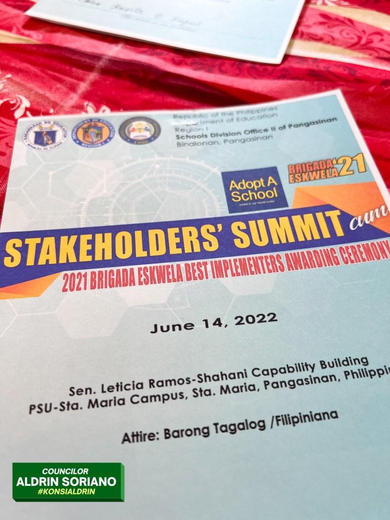 Kabaleyan, dumalo po tayo bilang kinatawan ni Mangaldan Mayor Mary Marilyn De Guzman-Lambino sa ginanap na Stakeholders’ Summit and Awarding Ceremonies for Best Implementers ng Brigada Eskwela 2021. Ginanap po ito sa Bayan ng Sta. Maria, Pangasinan kahapon.
